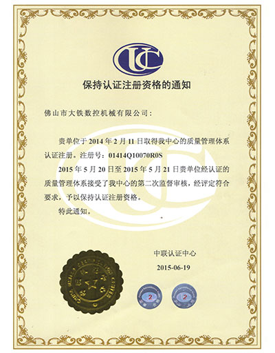 保持認證資格證書 注冊號:01414Q10070R0S