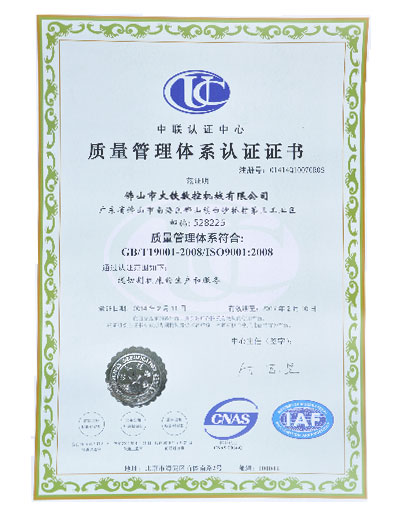 質量管理體(tǐ)係中文(wén)證書
