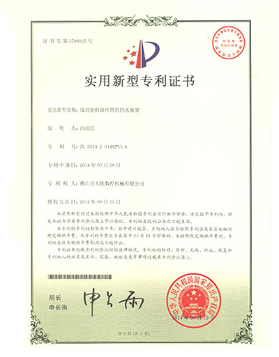 線形切割機的錐度裝置專利(lì)證(zhèng)書(shū)ZL 2014 2 0148173.3