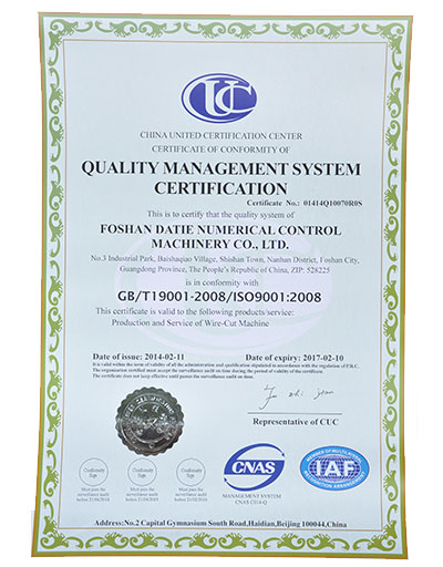 質量管理體係英文證書