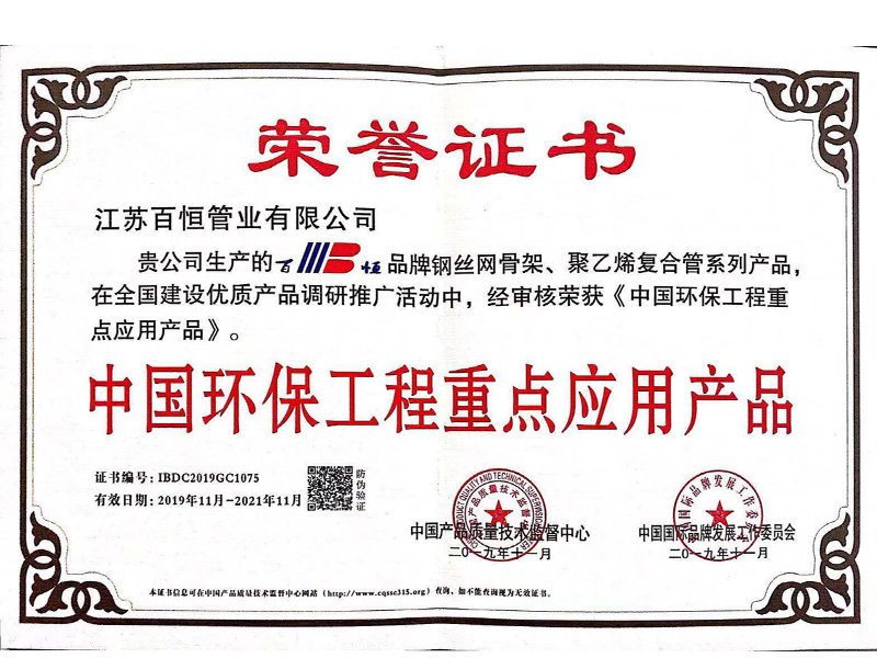 2016年,公司成功研發了dn200以(yǐ)下(xià)5.0Mpa,dn140以下(xià)6.0 Mpa/8.0 Mpa的鋼絲網骨架聚乙烯複合(hé)管及其配套連接接頭(tóu),突破了原行業標準高壓力3.5 Mpa的瓶頸。公(gōng)司的產品以(yǐ)其特有的防腐、耐磨、耐高溫、抗嚴寒、耐壓、抗蠕變、穩(wěn)定性好、安裝方(fāng)便等特點,逐步取(qǔ)代各類金屬管道(dào)和塑料管道,被廣泛應用於石油、化(huà)工、燃氣、供水、采礦、海水輸送等領域(yù)。